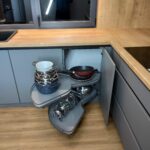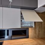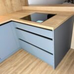 Bezotiskový povrch – W702 kašmírově šedá, W960 Onyxově šedá, Pracovní deska H3303 Dub Hamilton přírodní
